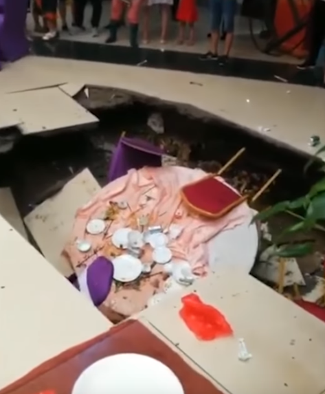 В Китае на свадьбе гости провалились сквозь пол. Инцидент произошел в одном из отелей города Шицзячжуа, провинция Хэбэй.